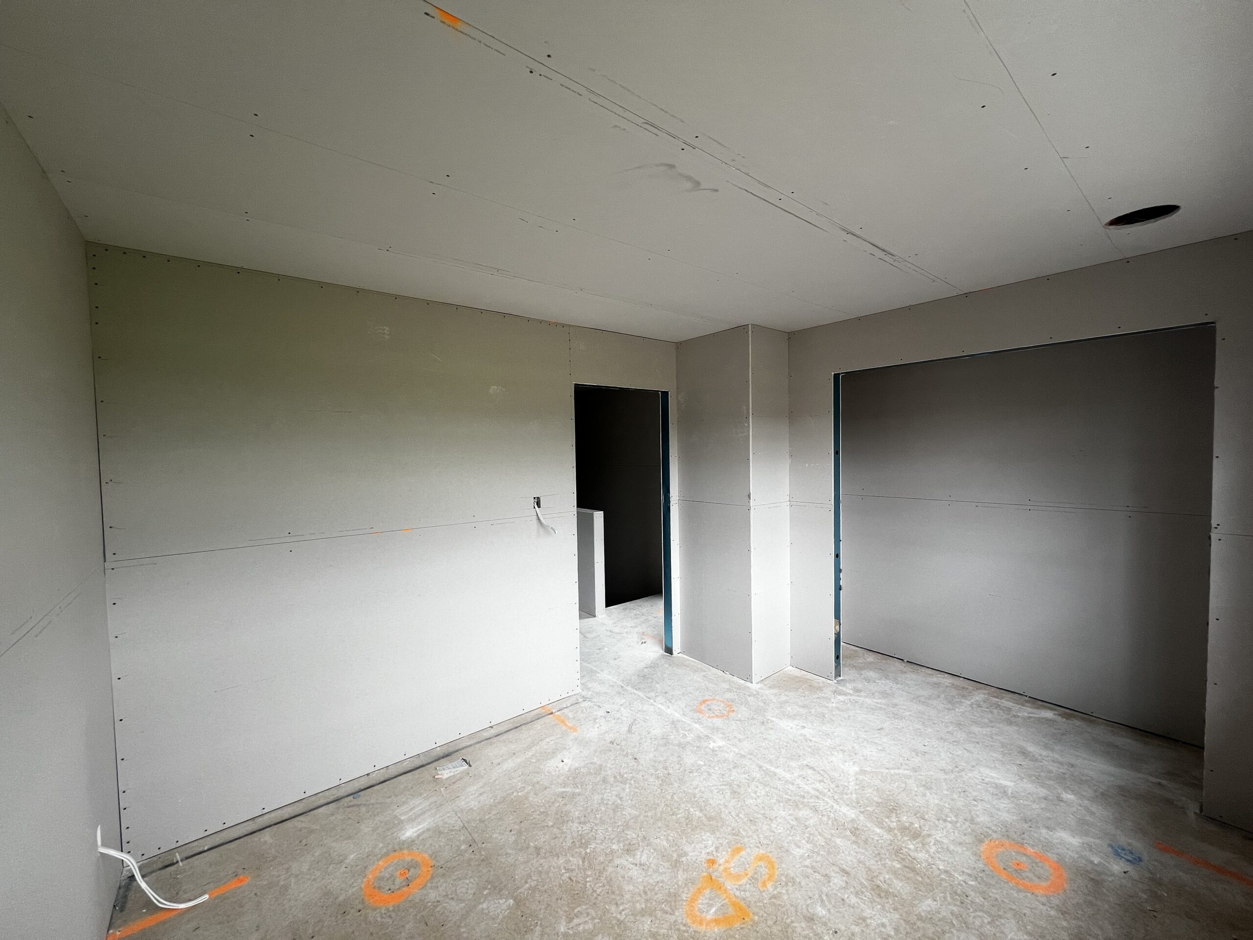 Large-scale townhouse project featuring GIB and insulation installation across multiple two-storey blocks. Managed complex access, tight stairwells, and detailed finishing — including lighting-sensitive walls and Level 5 plasterwork.