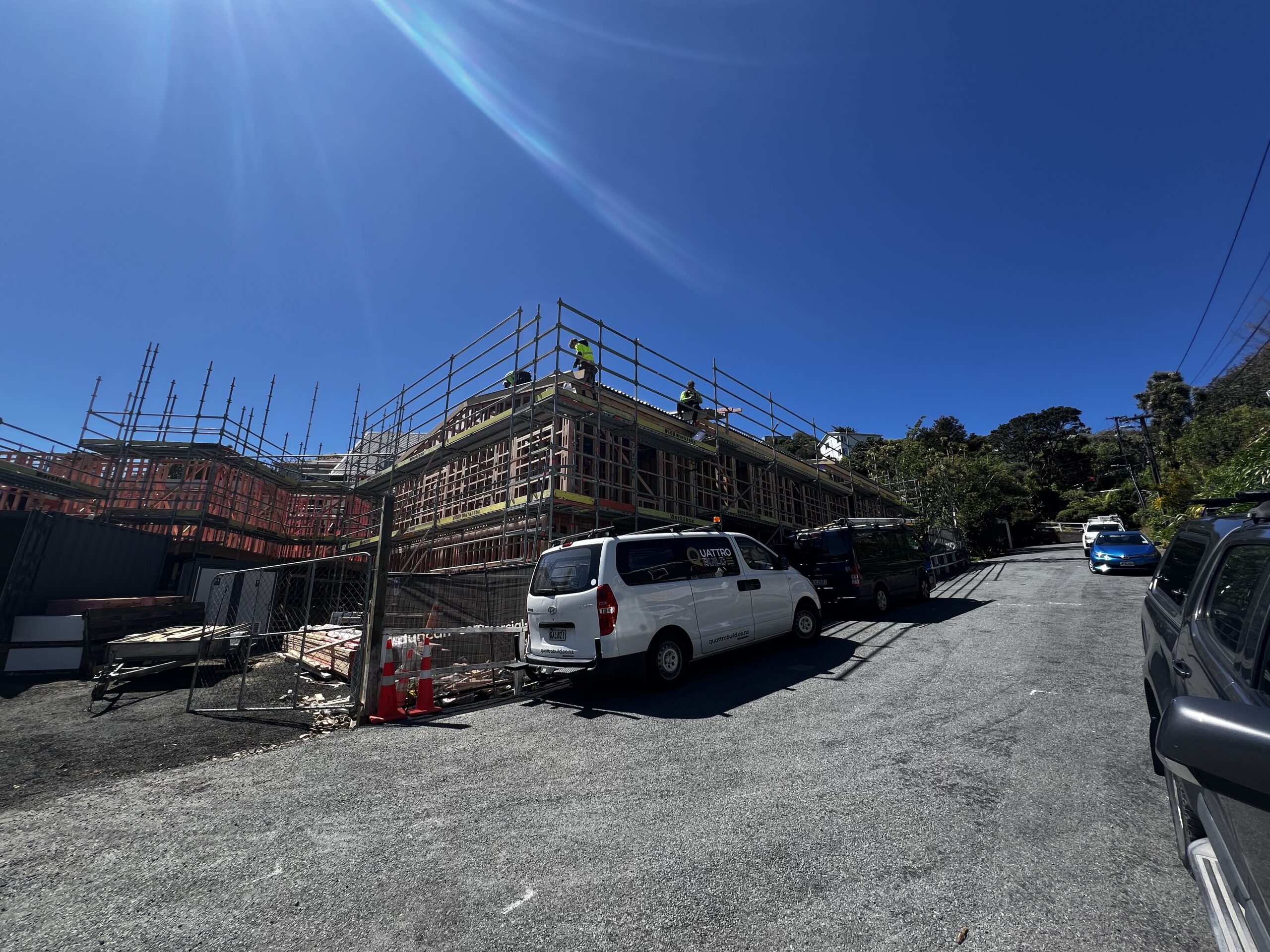 Three hillside homes built in challenging weather conditions. Our team installed full Weatherline and GIB systems with vertical sheet layouts, delivering durable protection and high-quality finishes despite wind and rain delays.